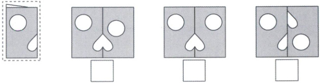 3. 欣欣在对折好的纸上剪了两个洞,打开后会是哪一个?在正确答案下面的□里画“√”。