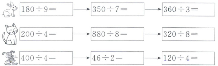 C 解题提示:商的十位上是4,表示4个十,4个十乘除数6,得到24个十,即40×6=240。表示240个乒乓球,每个盒子装6个,可以装40盒,剩下的4在十位上,表示剩下40个,图中虚线框出的部分表示装40盒,剩40个。