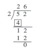 4. 有52支铅笔,每个小朋友分2支,可以分给多少个小朋友?凯泽用竖式计算出了结果(如图),方框部分表示(