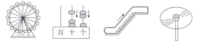 4. 下列现象中是平移的在括号里画“△”,是旋转的画“○”。