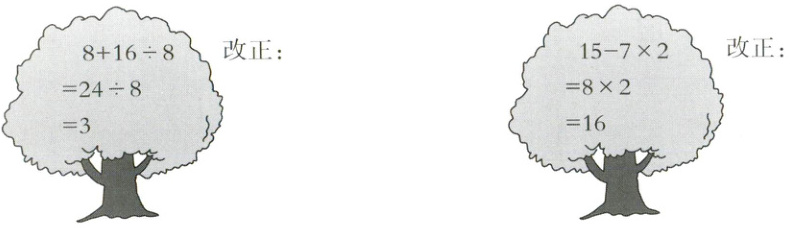 5. 航航在计算“8 + $□$÷4”时弄错了运算顺序,先算加法后算除法,结果是 5,正确的结果是(