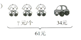(1)(61-34)÷3=9(元) (2)64-3×5=49(元)