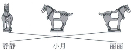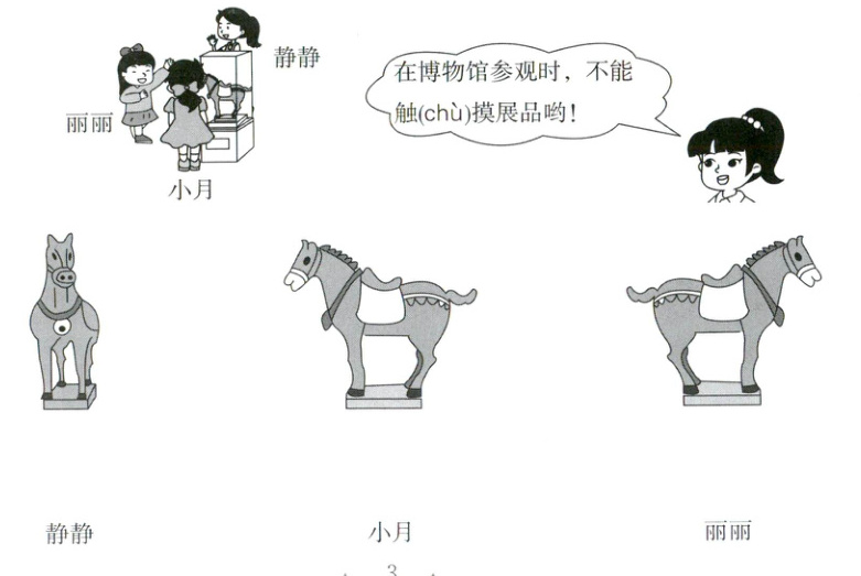 2.(生活情境)在博物馆里参观时,要保持安静,不拥挤,不乱扔垃圾。下面三个小朋友到博物馆参观时,被陈列柜中的“唐三彩马”所吸引。下面的图形分别是谁看到的?连一连。(6分)
