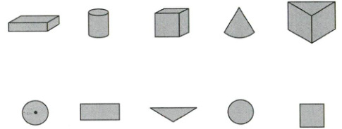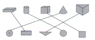 1. 下列物体从上往下看,分别是哪个图形?将相应的图形用线连起来。(5分)