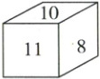 2. 一个正方体,六个面上分别写着六个连续的整数,且每个相对面上的两个数字之和相等,如图,你能看到的数为8,10,11,求六个整数的和是多少。(8分)