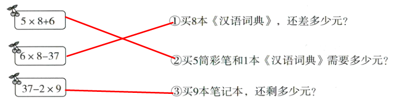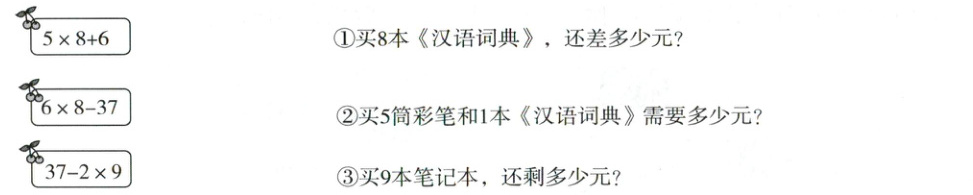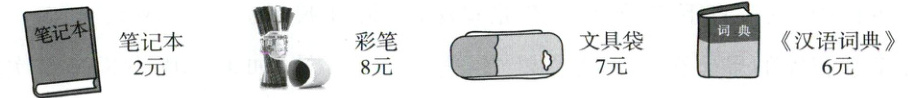 (2)买9个文具袋和1本《汉语词典》一共需要多少元。(3)5×8-6=34(元)