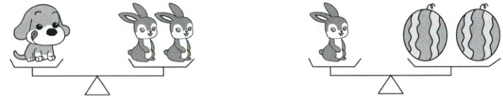 3. 如下图,一只小狗重8千克,一只小兔和一个西瓜共重多少千克?(5分)