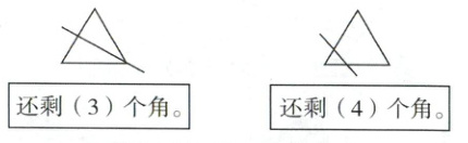 4. 把一个三角形划去一个角,还剩几个角?画一画,填一填。(8分)