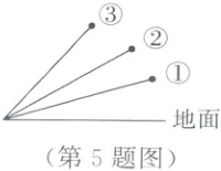 5. 清代高鼎的《村居》:草长莺飞二月天,拂堤杨柳醉春烟。儿童散学归来早,忙趁东风放纸鸢。生动描写了儿童散学归来放风筝的情景。如图画的是①、②、③三个同学放飞的风筝,风筝线与地面所形成的较小角中最大的是(