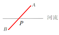 1. 连接A、B两点,线段AB与河流交于点P,点P即为抽水站的位置