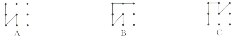 4. (8分)(1)手机已成为人们不可缺少的生活用品。为了保护个人信息,我们可以给手机加一个开幕锁,手机开幕锁一般有4种,分别是密码锁、图形锁、指纹锁和指令信息锁。图形锁就是在九宫格上设置一笔连成的图案,最少需要连续4个点,最多连续9个点。东东妈妈解锁手机的密码是一个图形锁,这个图形锁里有2个直角,1个锐角,东东妈妈的图形锁可能是( )。(3分)