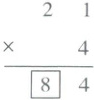 5. 每支笔4元,买21支笔要花多少元钱?可以用右边的竖式计算,积中十位上的8表示的是买(