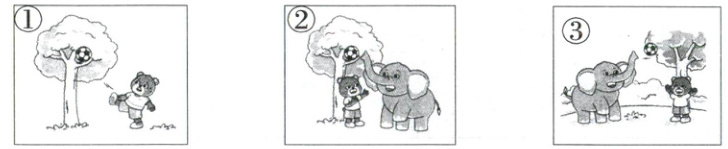 小熊遇到了什么难题?小象是怎么帮他解决的?他们之间会说些什么?发挥想象,按照图片顺序写几句话吧。