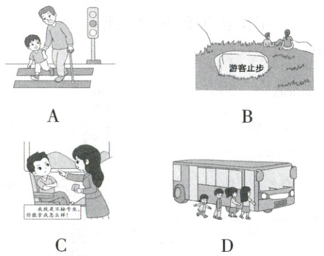 。(填序号)(2 分)2. 选择一张图片,谈谈你对图中人物行为的看法。(3 分)
