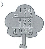 (1) 圈出竖式中第二步积“124”(末位与个位对齐错误)及结果“1092”。
