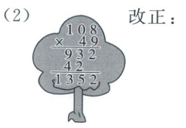 (2) 圈出第一步积“932”(应为972)、第二步积“424”(应为432)及结果“1352”。