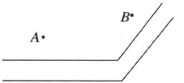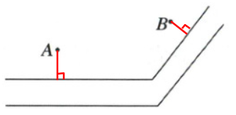 1. 从 $A$、$B$ 两点各修一条小路与公路连接,怎样修最近?请画出来。(4分)