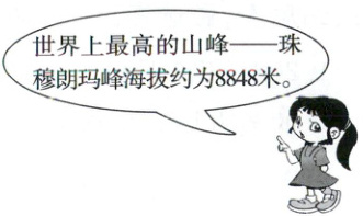世界上最高的山峰——珠穆朗玛峰海拔约为8848米。