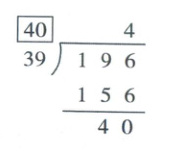 3. 用竖式计算$196÷39$(如图),下面继续试商的方法中,正确的是(