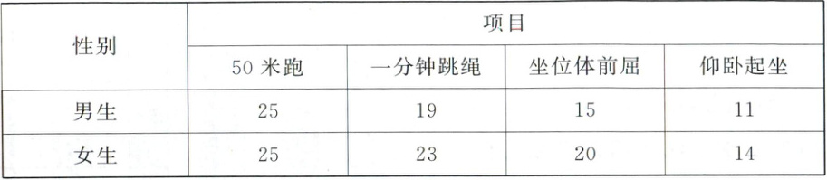 (3)从表中可知,男、女生差距最大的项目是( )。