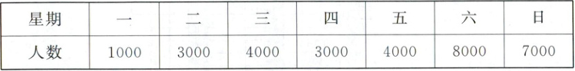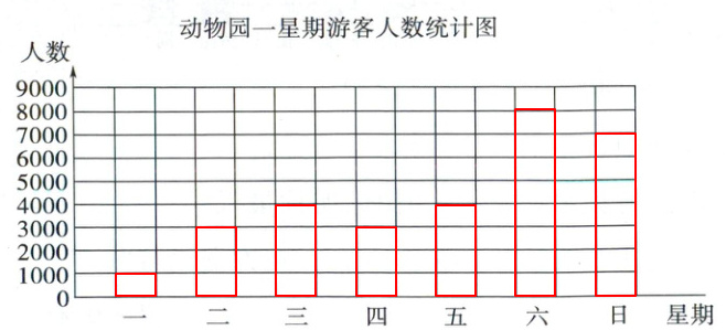 (2)星期六游客人数最多,原因可能是周末人们都休息。(3)星期一游客人数最少。8000-1000=7000(人)