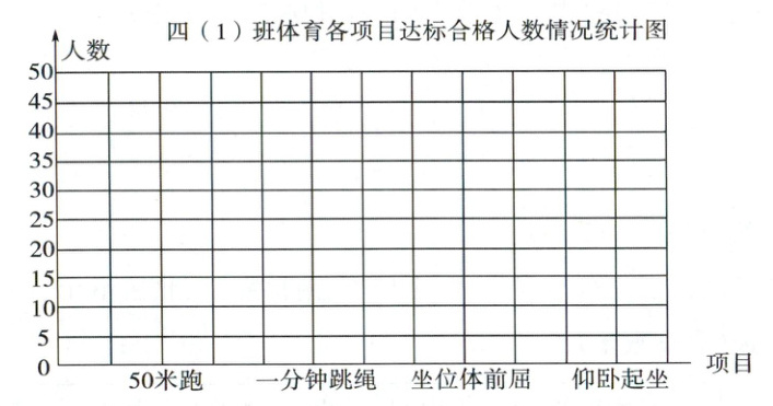 2. 少年强则国强。加强体育锻炼是提高身体素质的重要途径。下面是四(1)班体育各项目达标合格人数的统计表。(16分)