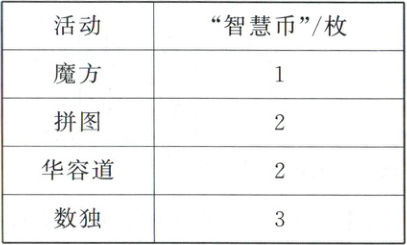 3.(探究思维)四(1)班在“数学日”策划了四个活动,活动前每人只发放一枚“智慧币”。(9分)
