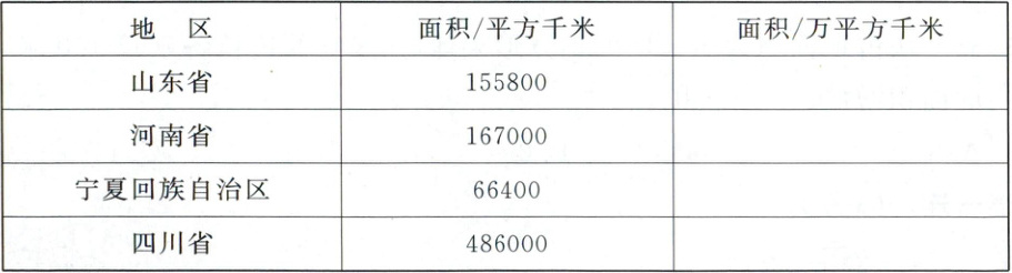 1. 我国陆地面积约为 960 万平方千米。下面是我国山东省、河南省、宁夏回族自治区、四川省的面积统计表。(8 分)
