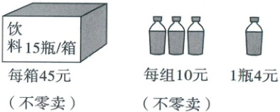 2. 秋游活动前,王老师准备在“天天超市”为四(1)班的50名学生每人买一瓶饮料,最少要花(