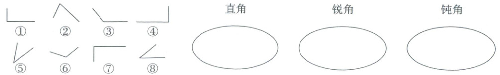 直角:①④⑦ 锐角:②⑤⑧ 钝角:③⑥