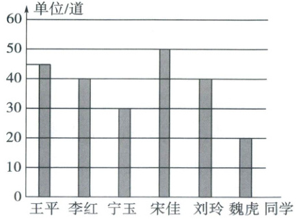 5. 王平、李红、宁玉、宋佳、刘玲、魏虎是一个小组的同学。下面是他们进行1分钟口算比赛的成绩,从统计图中可以看出: