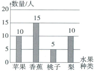 4. 四(5)班的同学举行联欢会,班长调查了同学们最喜欢吃的水果。根据右面的统计图回答问题。