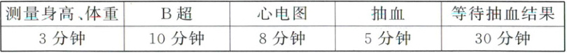3. 小楠陪爷爷到医院体检,体检的项目和每个项目所需要的时间如下表: