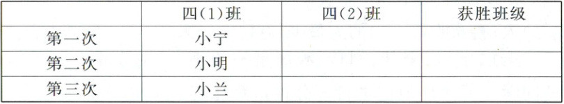 如果四(2)班想要赢四(1)班,四(2)班应怎样派出选手?请在下表中表示出来。(6分)