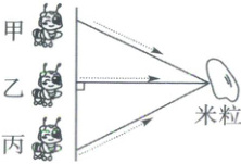 )蚂蚁最先吃到米粒,理由:(从直线外一点到这条直线所画的垂直线段最短