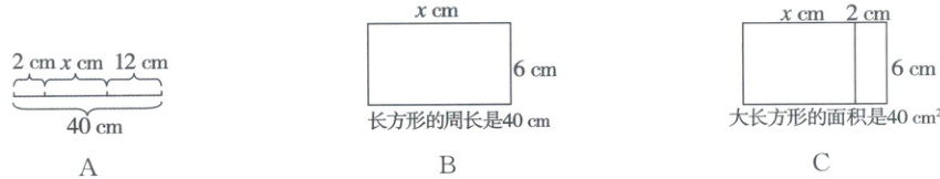 5. 下列图形中,能用方程 $ 2x + 12 = 40 $ 表示的是(