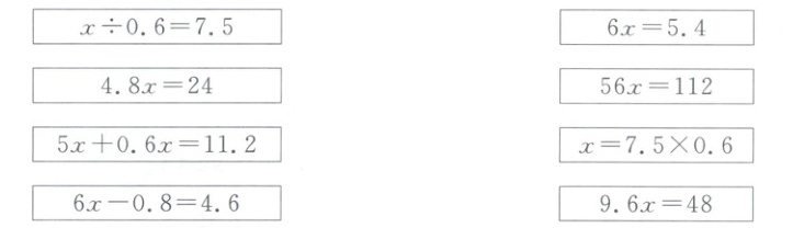 $6x - 0.8 = 4.6$,$6x=4.6 + 0.8=5.4$与$6x = 5.4$相连。
