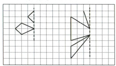 2. 对于右侧图形:同样以虚线为对称轴,找到右侧图形每个关键点关于对称轴的对称点,再依次连接这些对称点,画出图形的另一半。 (由于无法实际画图,具体图形为在原图形对应对称位置画出与之对称的部分)
