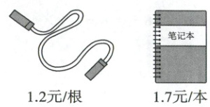 1. 五(1)班原有班费24.8元,同学们又利用业余时间卖废品得到了16.5元。如图,用这些钱可以买多少根跳绳?或者可以买多少本笔记本?(根据实际情况取值)(5分)
