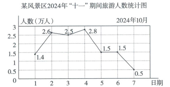 1. 下面是某风景区2024年“十一”期间旅游人数统计图。(8分)