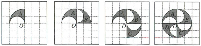 2. 把下图中的图形绕点O沿顺时针方向旋转90°,照这样变换三次。(6分)