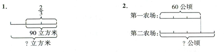 1. $90÷\frac{2}{3}=135$(立方米) 2. $60÷\frac{3}{4}=80$(公顷)