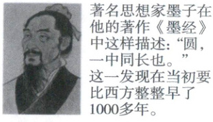 )。著名思想家墨子在他的著作《墨经》中这样描述:“圆,一中同长也。”,这一发现比西方整整早了 1000 多年。