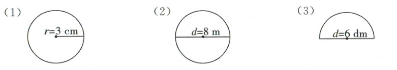 (3) 周长: $3.14×6÷2 + 6 = 15.42(dm)$