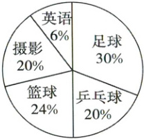 (1)足球:$50× 30\% =15$(人) 乒乓球:$50× 20\% =10$(人) 篮球:$50× 24\% =12$(人)