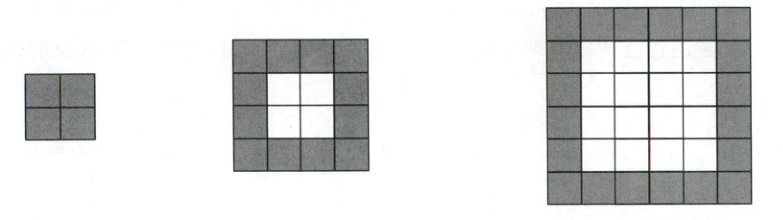 (1) 每个图中最外圈各有多少个小正方形?在图中填一填。(6分)
