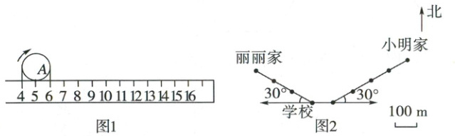 )$m$ 到家。③小亮家在学校北偏东 $45^{\circ}$ 方向 $250\ m$ 处,请你在平面图中标出小亮家的位置。
