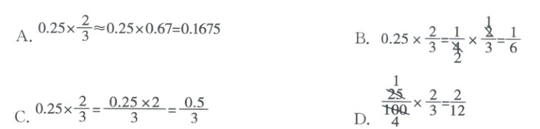 5. 计算$0.25× \frac{2}{3}$时,算式(