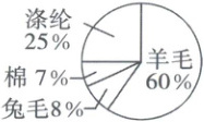 2. 如图是一件毛衣中各种毛料占总重量百分比的统计图,已知棉的含量是49g,则羊毛的含量是(