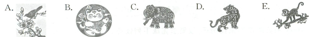 八、Mary 和朋友们来参观奶奶的剪纸。根据对话,选择正确的图片。(10分)